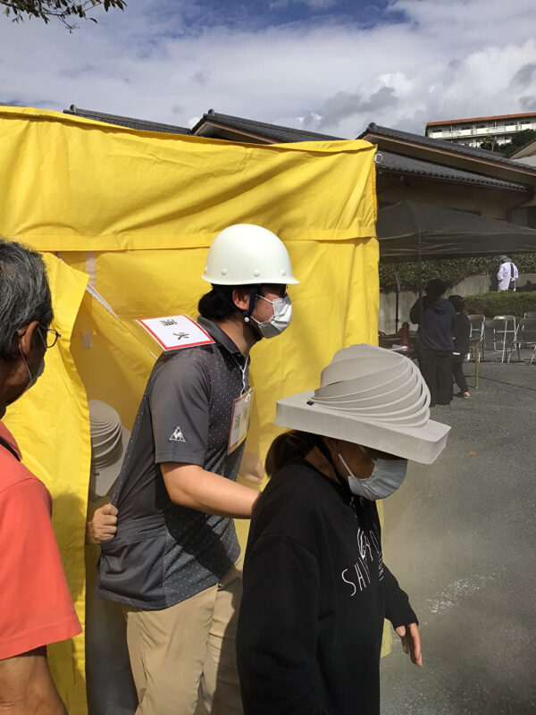 避難訓練後は、希望した方々が、煙の中での避難を体験していただきました。