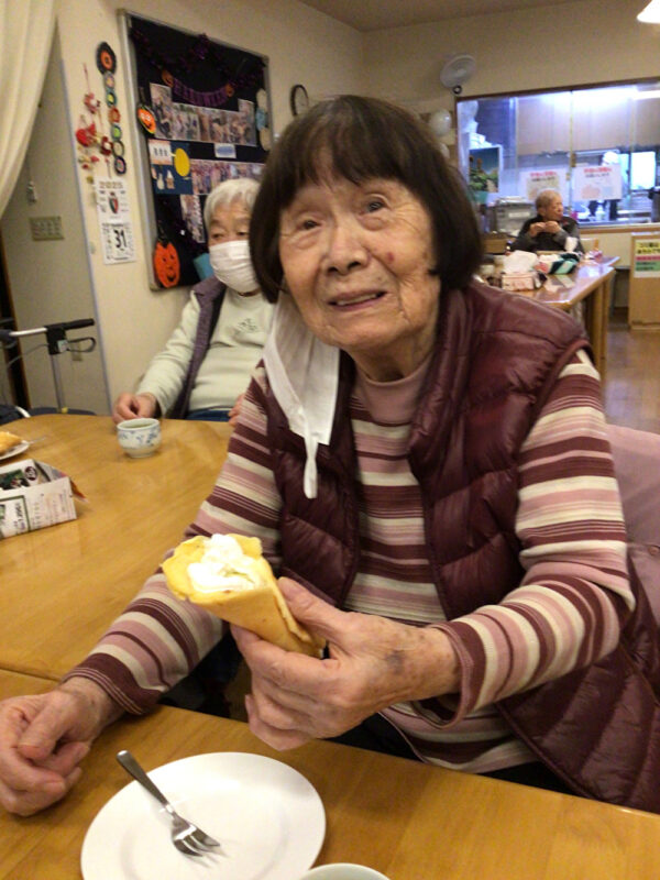 木々の色づきとともに、季節の移り変わりを皆さまと共に感じながら、健やかに毎日を過ごしております。爽やかな秋晴れと心地よい風の中、入居者様と散歩に出かけてきました。