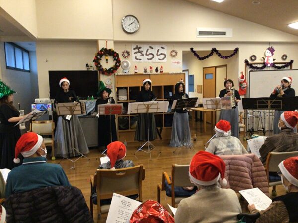 ユニット「どんぐりコロコロ」のフルート演奏で、クリスマスソングが流れるたびに、 身体を揺らしたり、自然と笑顔になったりと、会場全体がほっこりした空気に包まれていました。