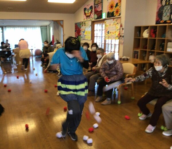 「鬼は外!福は内!」の元気な掛け声とともに、鬼に向かって、豆を力いっぱい投げられていました。鬼を追い払った後は、お互いの健闘を称え合う拍手👏と笑い声に包まれ、フロア中に「福」が呼び込まれたような、とても賑やかなひと時となりました。