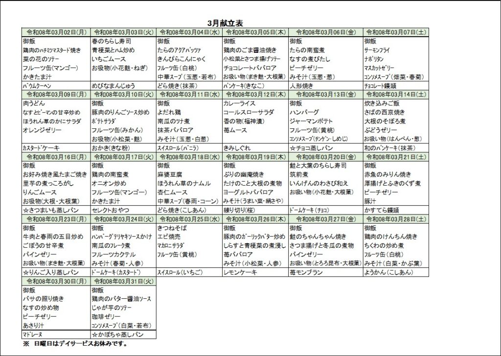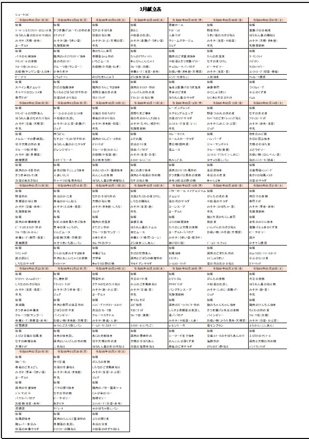 3月献立表が出来ました。