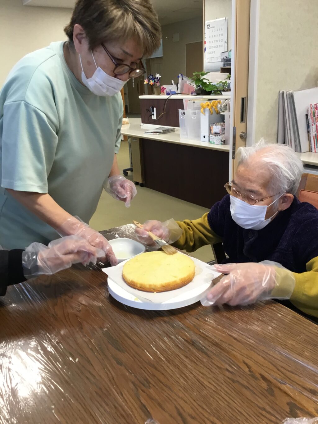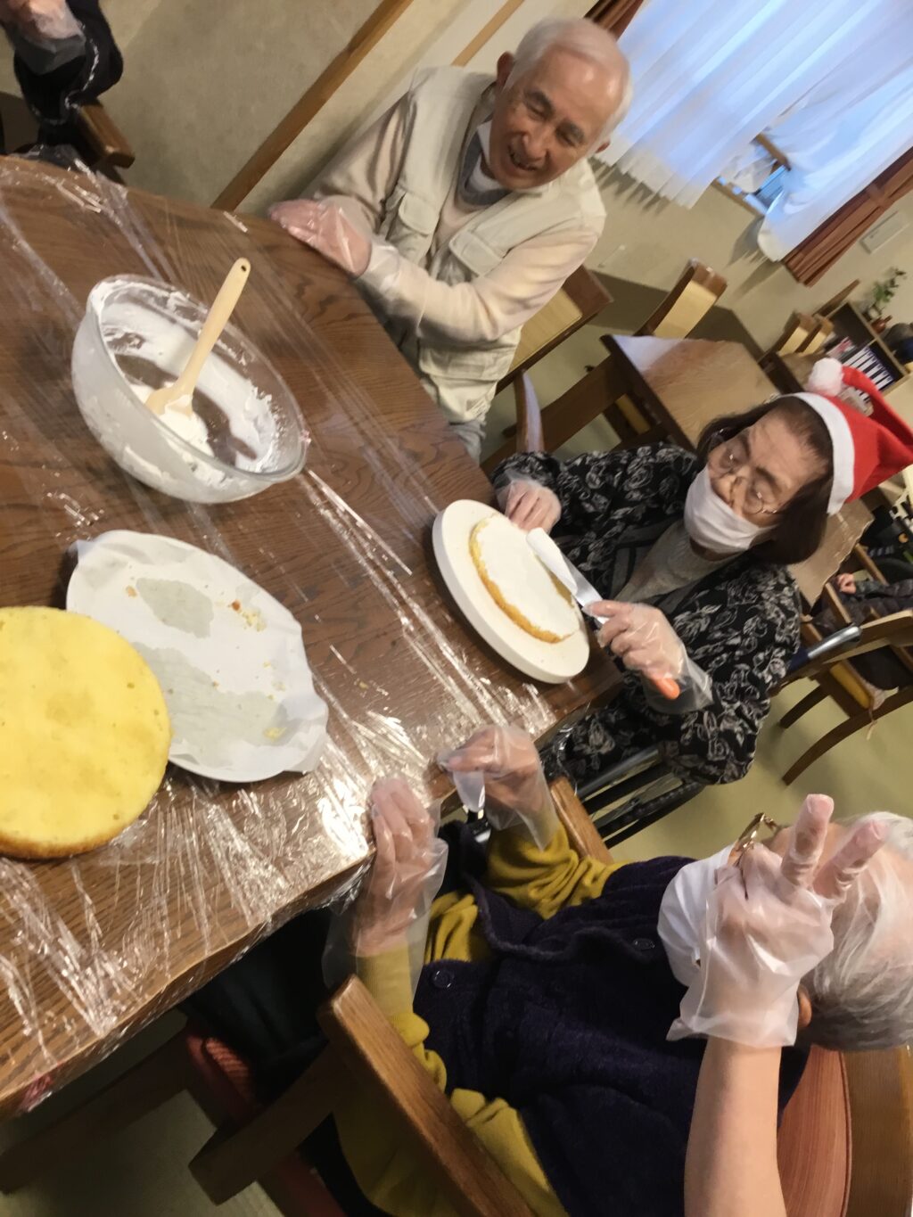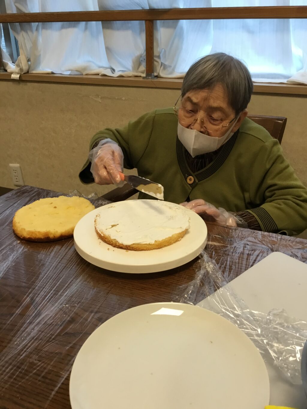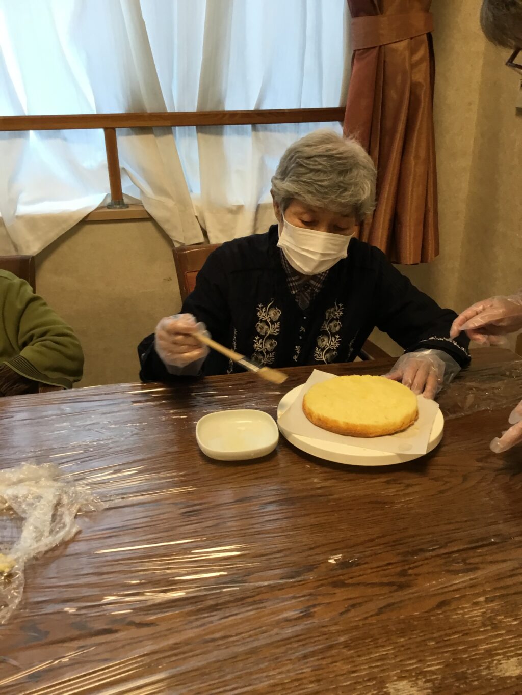 スポンジケーキに、下地を塗って、クリーム縫って♪tanosikuケーキ作りをしました🎂