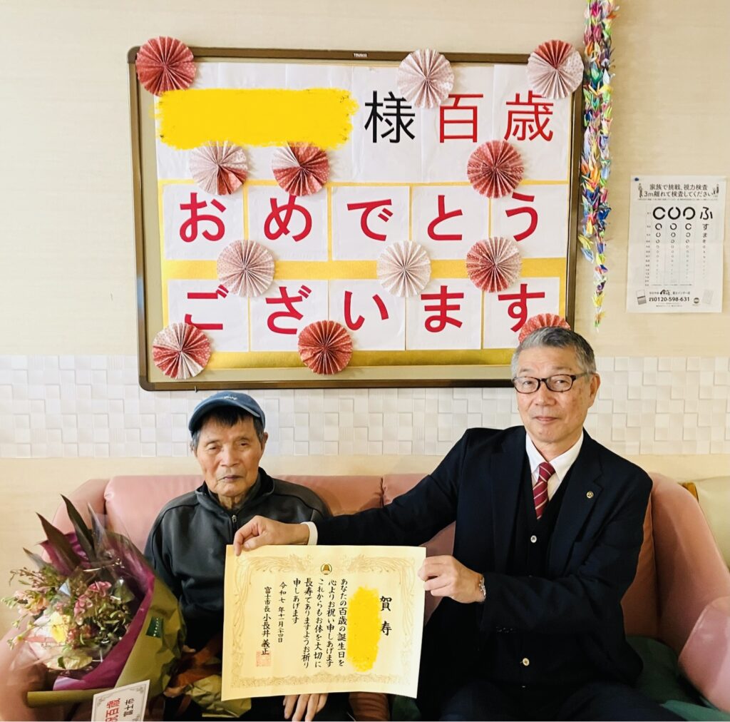 100歳という素晴らしい節目を、ご入居者様と共にお祝いできたことは、わたしたちにとってもかけがのない喜びとなりました。