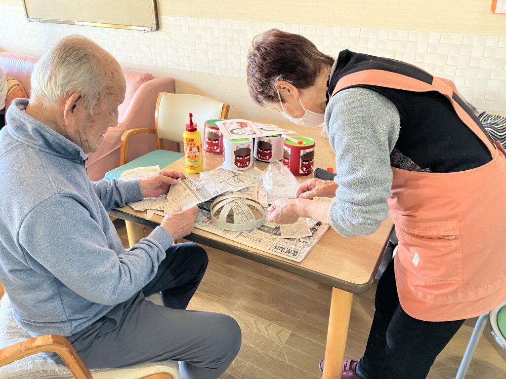 節分に向けて、手作りの飾りを皆様と一緒に準備しました。