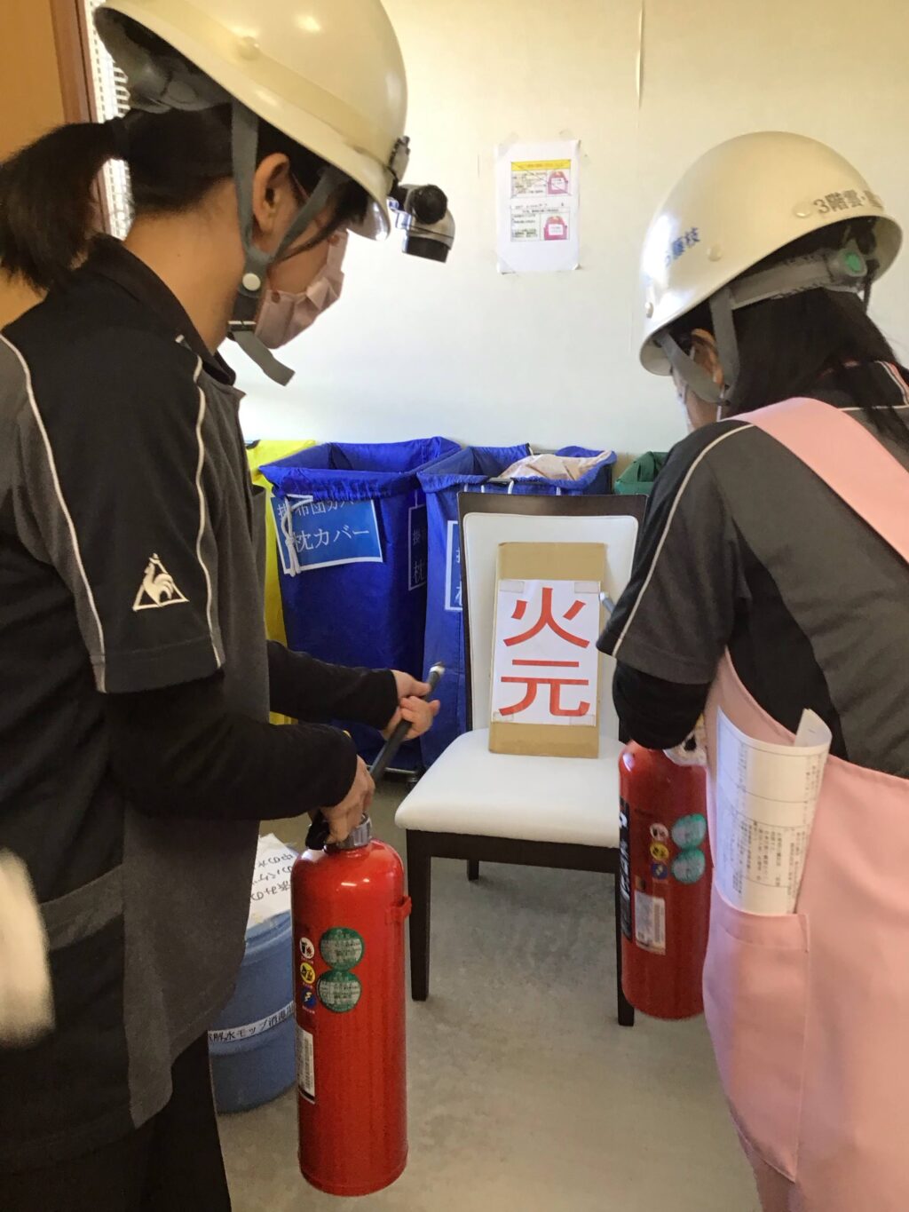 今回は日中の火災発生時の避難訓練を行い、消火時の動きや職員間の連携、情報共有等を確認しました。