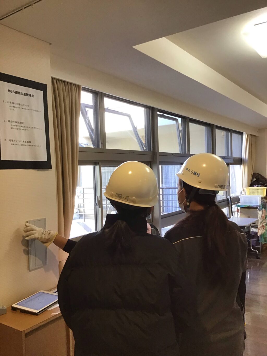 排煙装置の確認や出入口ドアの解放等、地震想定とは異なった動きも再確認しました。