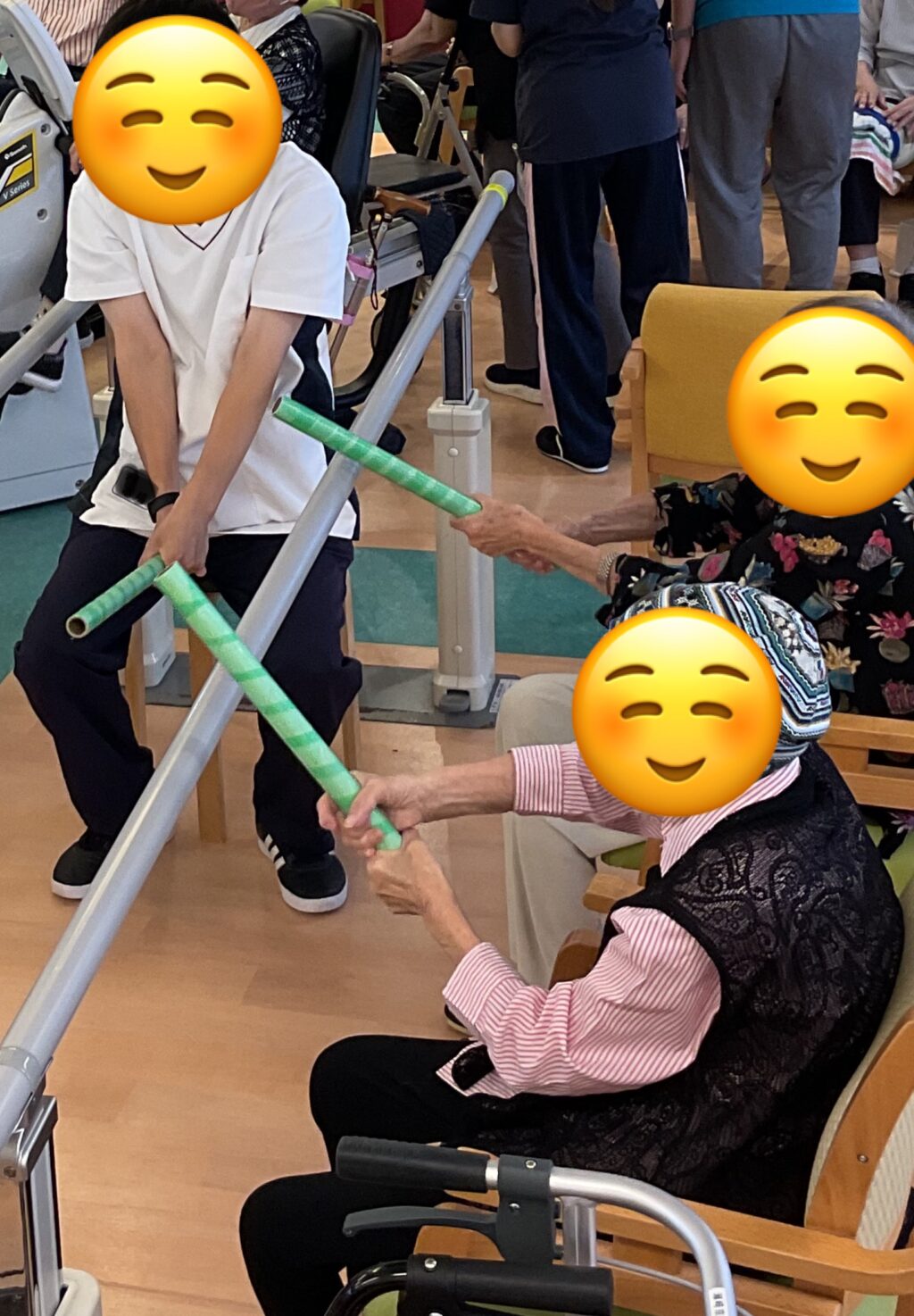 身体機能の維持・向上:棒体操は、全身の筋肉を使い、廃用症候群(使わないことで体が弱る状態)の予防に効果的です。